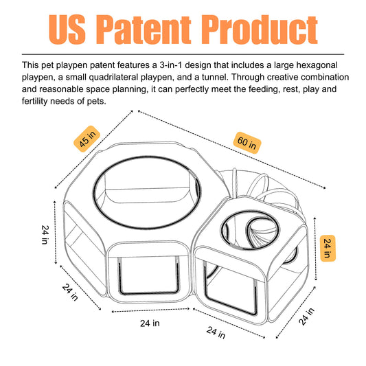 Portable Cat Playpen with Play Tunnel, Pop-up 3-in-1 Foldable Pet Maternity Room for Puppy & Kitten
