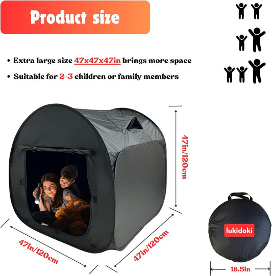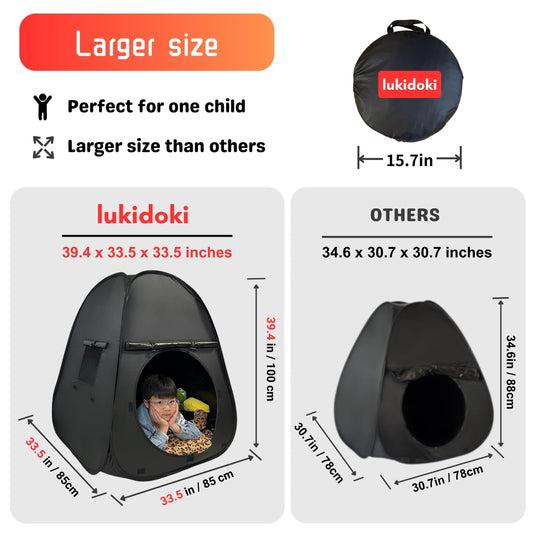 lukidoki Sensory Tent for Kids with Autism, ADHD, SPD|39" x39" x39" Portable Pop-up Blackout Play Tent