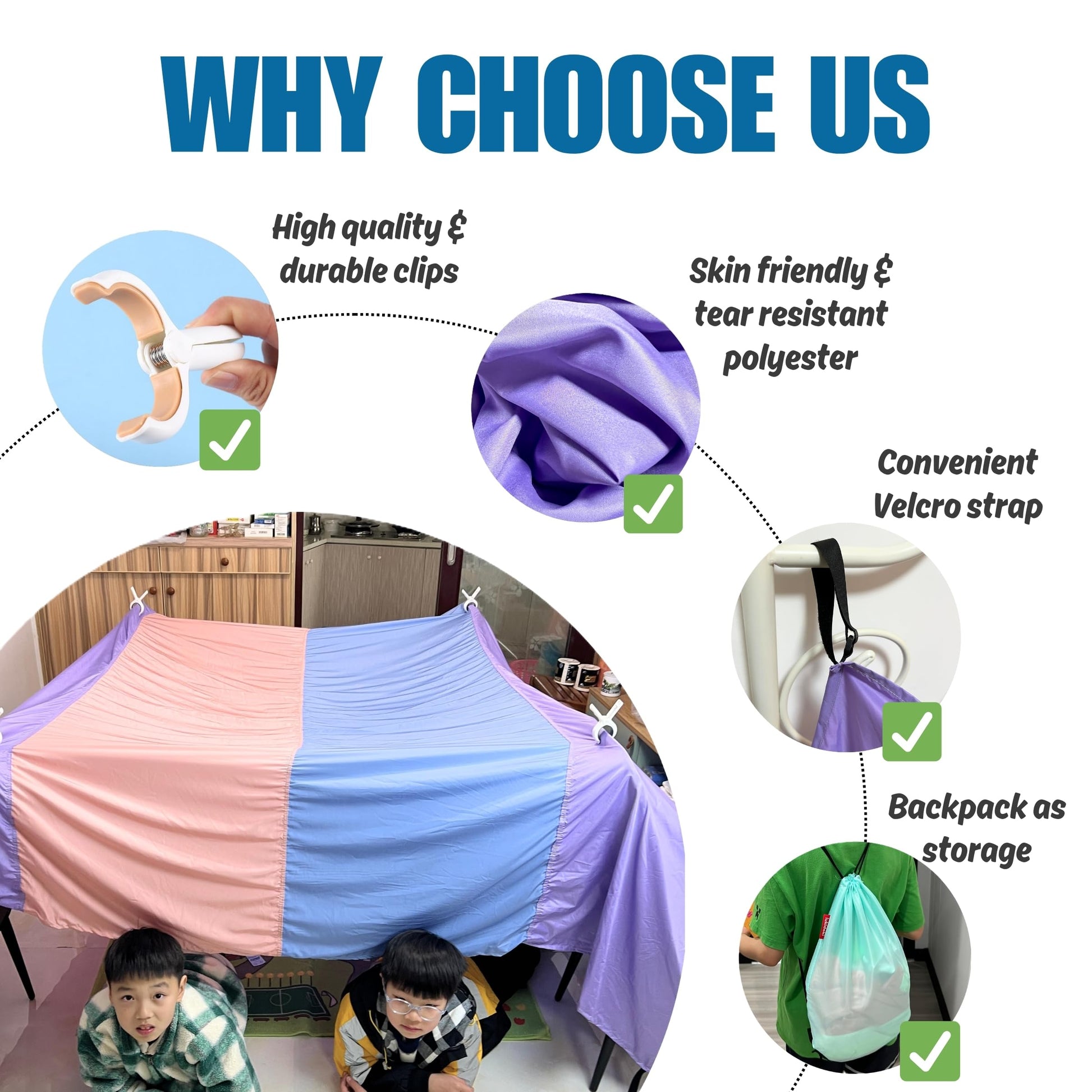 ✅ Certified Safe for Children – Our blanket fort building kit is CPC (Children’s Product Certification) certified. It has undergone rigorous ingredient testing to ensure it contains no harmful substances, meeting U.S. children's product safety standards. This provides peace of mind and better protection for your little ones.